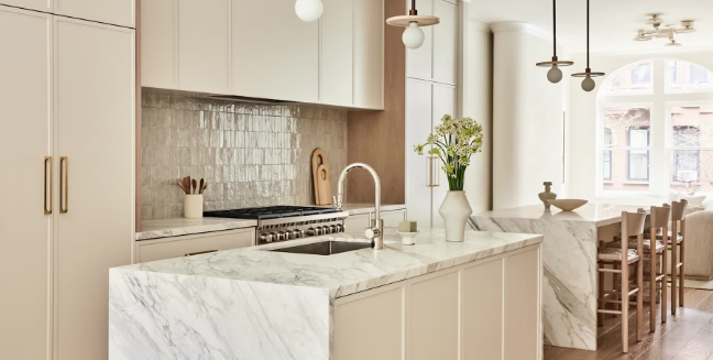 • Los acabados elegidos, independientemente del material, deben ser de calidad, para resistir las particulares y duras condiciones de la cocina y no comprometer la inversión. Los materiales importan mucho en cualquier cocina, especialmente si cocinas mucho. Independientemente de la superficie o forma de la cocina, los materiales elegidos deben ser resistentes, fáciles de limpiar y estéticos.