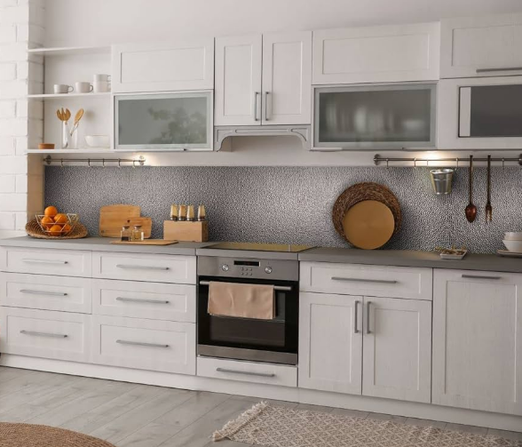 - Paneles decorativos de piedra natural. La piedra natural se utiliza desde hace mucho tiempo para el revestimiento de paredes de cocinas. La piedra decorativa ofrece un aspecto natural y es muy versátil, existen diferentes tipos de piedra, colores y estampados. A la resistencia a la humedad y a las altas temperaturas se le suma resistencia a la rotura y al agrietamiento.