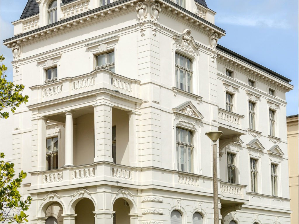Los elementos específicos del extravagante Art Déco destacan por el lujo. Las terrazas y balcones de forma redonda contribuyen a la asimetría de los edificios. Los materiales son generalmente naturales, como madera, piedra, ladrillo, mármol, metal y vidrio. Las paredes están cubiertas con perfil decorativopaneles esculpidos y bajorrelieves. La hornacina está enmarcada por columnas de mármol con basas y zócalo de madera tallada.
